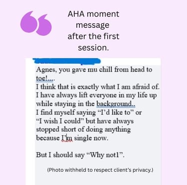 I will help you reconnect with your femininity, shift old patterns shaped by your life and past relationships so you can attract love from a place of confidence and emotional safety. All of this can happen in the comfot of your home.